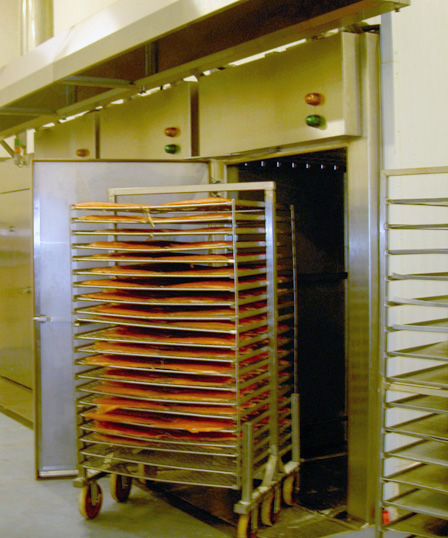 Вместе с установкой наши клиенты получают зарекомендовавшую себя технологическую концепцию для почти всех видов обработки продукта. Установки оборудованы полностью автоматическим микропроцессорным управлением с сенсорным дисплеем, гарантируют постоянное качество при копчении, горячем тушении, запекании, жарке, варке на пару, сушке, потении, покраснении и оттаивании продукта. При использовании специального оснащения возможно даже созревание, климатизирование и душирование. Вид обогрева – на выбор заказчика: пар низкого и высокого давления, электричество.